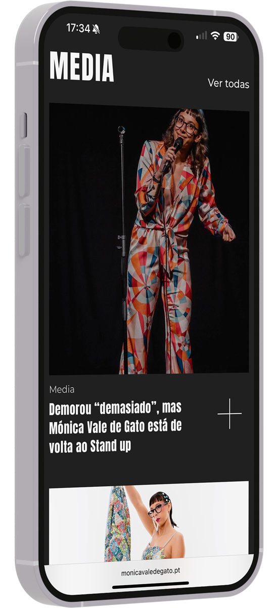 A Mónica Vale de Gato já nos faz rir há anos — e agora também tem um espaço onde podemos acompanhá-la entre palcos. Criámos o website oficial da comediante portuguesa, com tudo o que importa: biografia, agenda de espetáculos, media e mais.